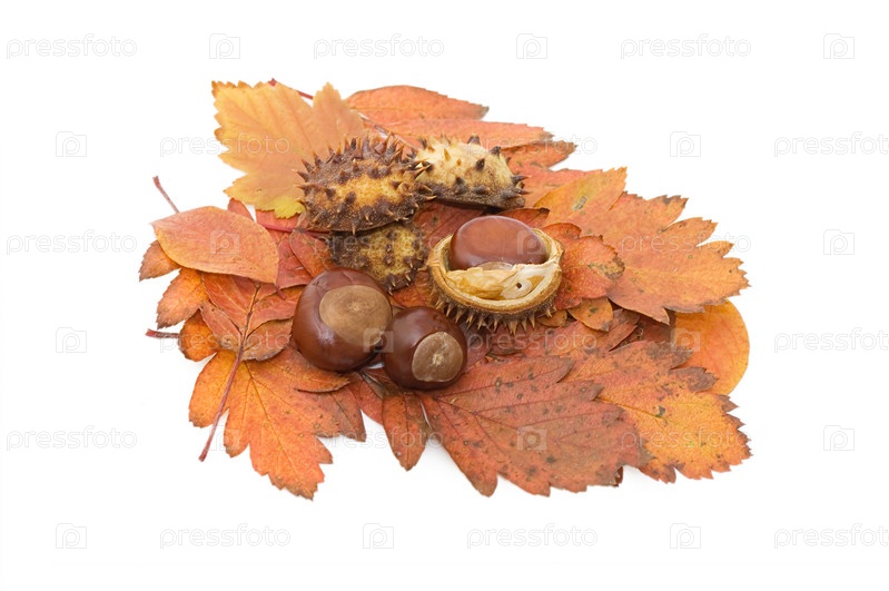 Каштаны на осенней листве