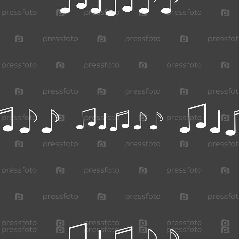 Музыка. Бесшовный узор на сером фоне. Вектор