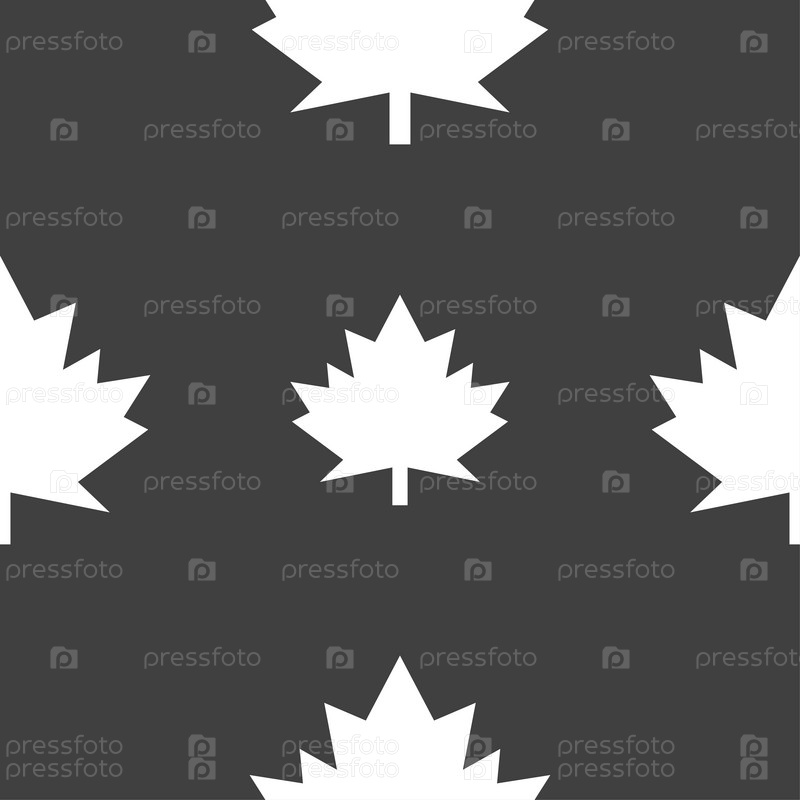 Кленовый лист значок. Бесшовный узор на сером фоне. Вектор