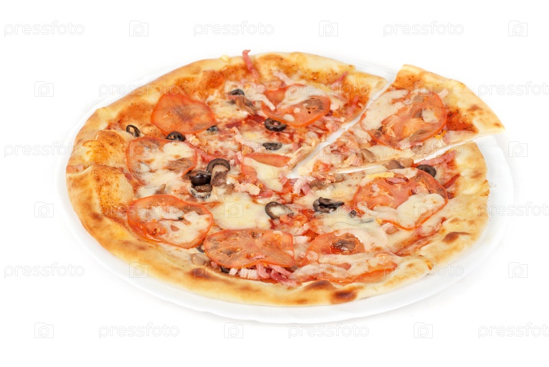 Пицца с ветчиной, маслинами и сыром