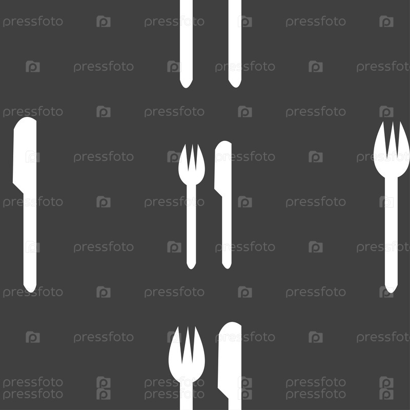 Вилка и нож. Бесшовный узор на сером фоне. Вектор