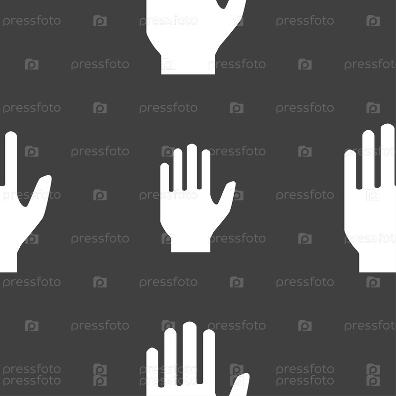 Рука, стоп знак. Бесшовный узор на сером фоне. Вектор
