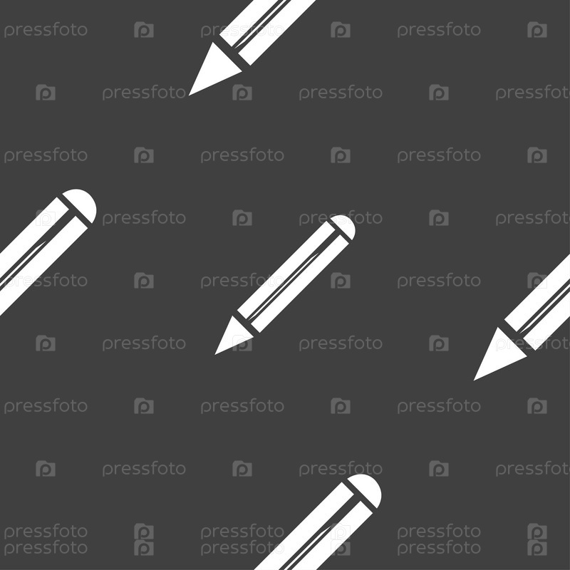 Значок карандаша. Бесшовный узор на сером фоне. Вектор