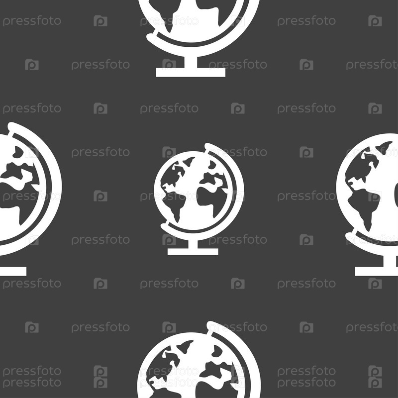 Глобус. Бесшовный узор на сером фоне. Вектор