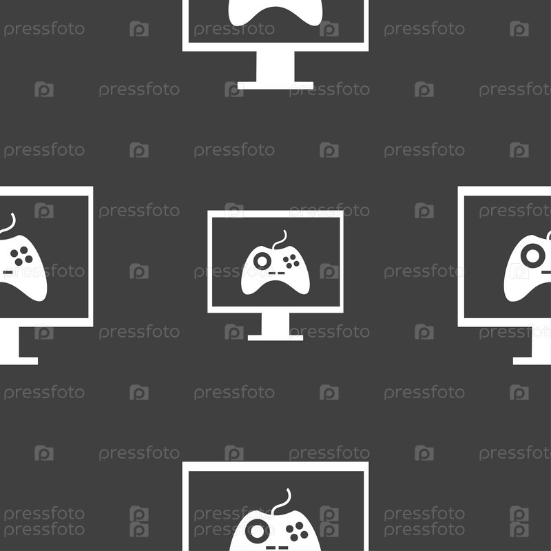 Джойстик и монитор. Бесшовный узор на сером фоне. Вектор