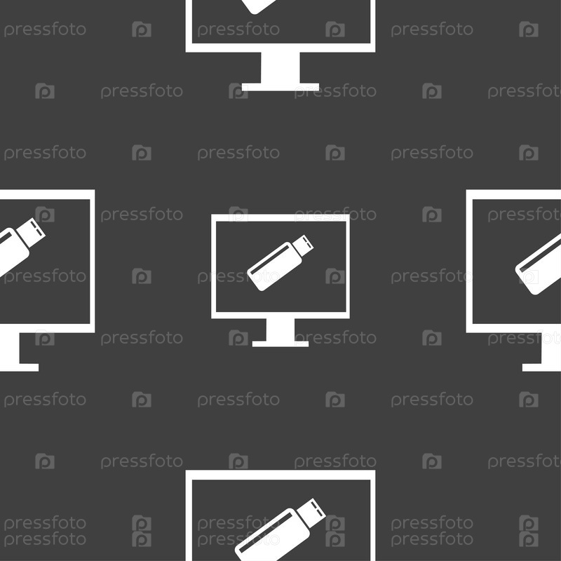 Флэш-накопитель. Бесшовный узор на сером фоне. Вектор