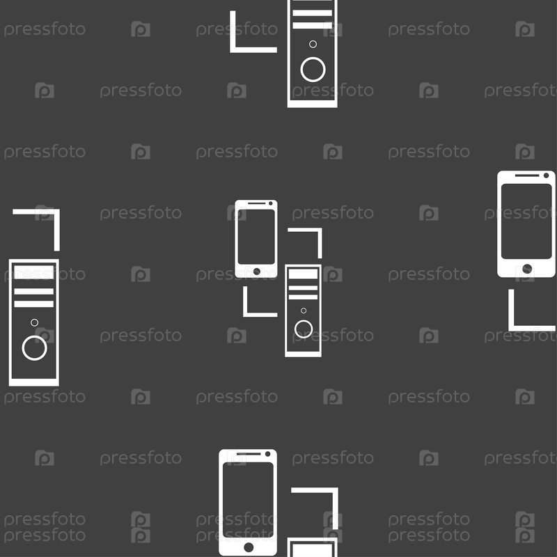 Обмен данными. Бесшовный узор на сером фоне. Вектор