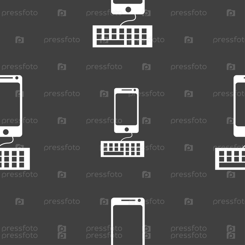 Компьютерная клавиатура и смартфон значок. Бесшовный узор на сером фоне. Вектор