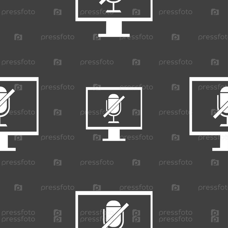 Значок микрофона. Бесшовный узор на сером фоне. Вектор