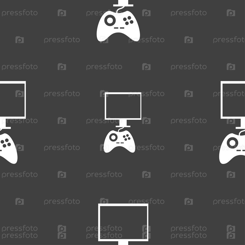 Джойстик и монитор. Бесшовный узор на сером фоне. Вектор
