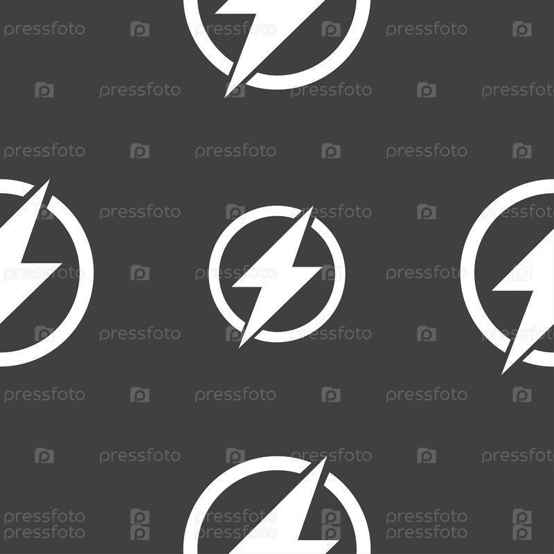 Значок вспышки. Бесшовный узор на сером фоне. Вектор