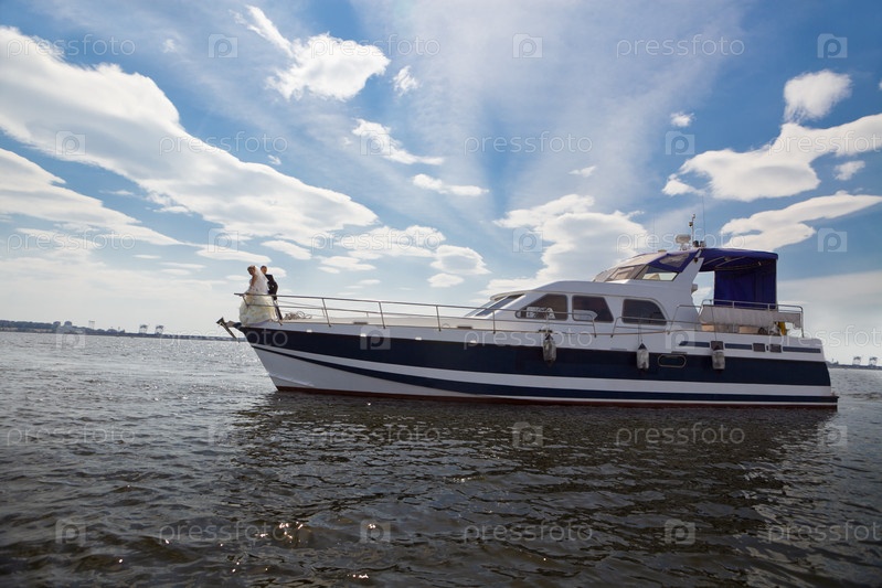Молодожены катаются на катере