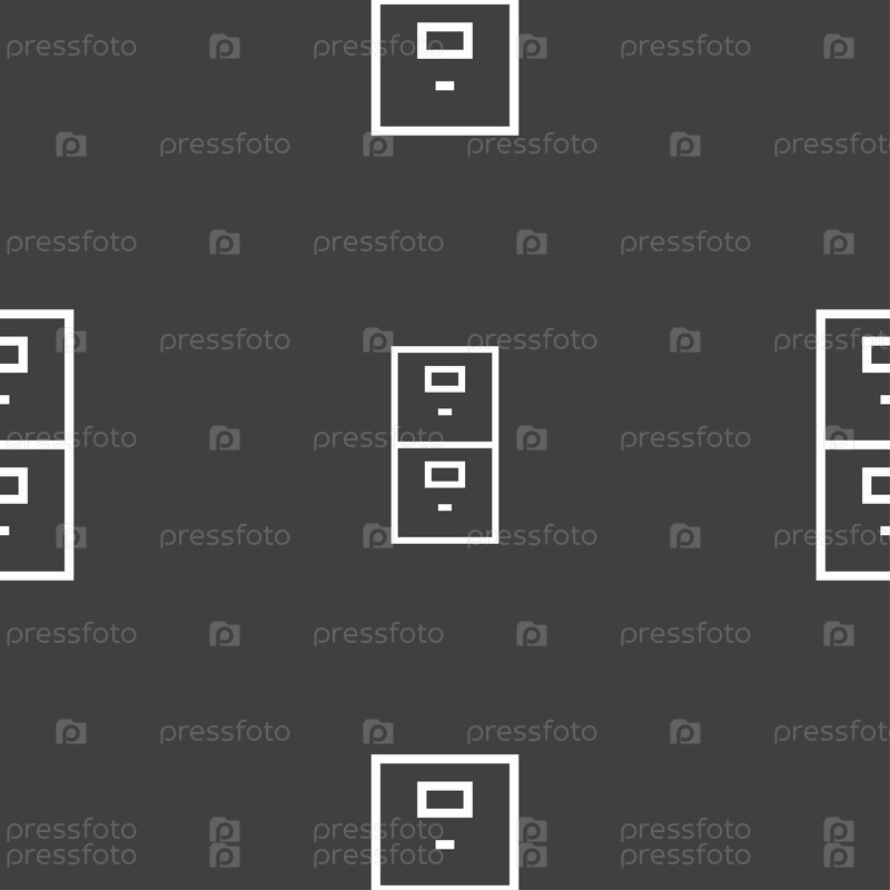 Иконка Сейф. Бесшовный узор на сером фоне. Вектор