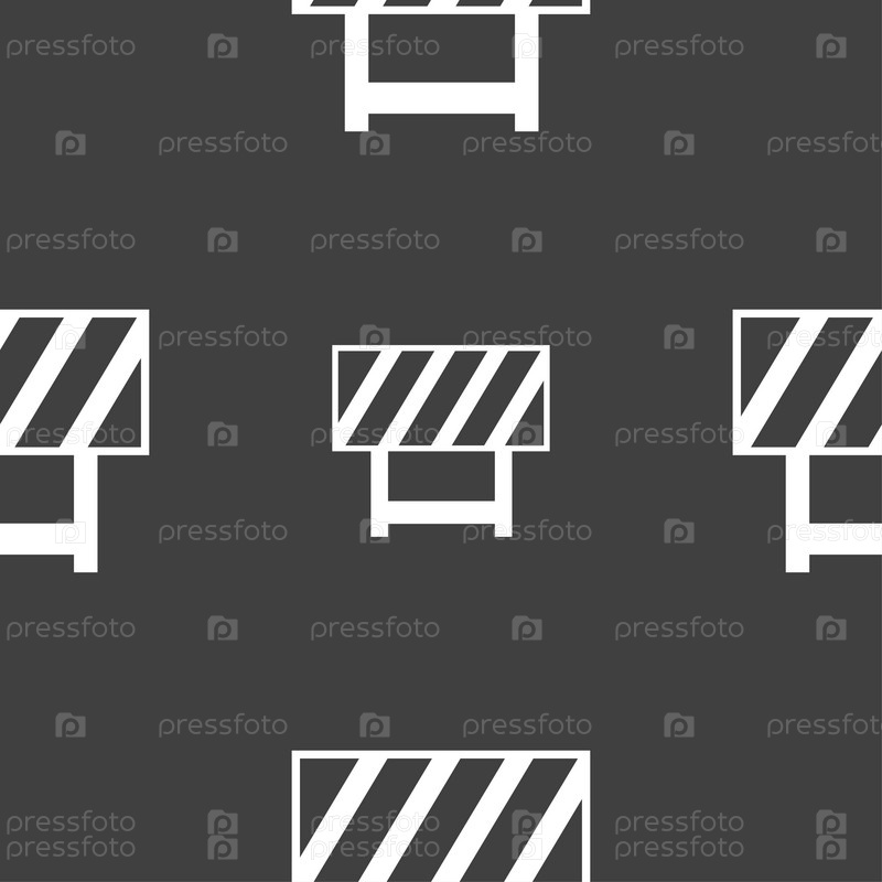 Дорожный знак барьер. Бесшовный узор на сером фоне. Вектор