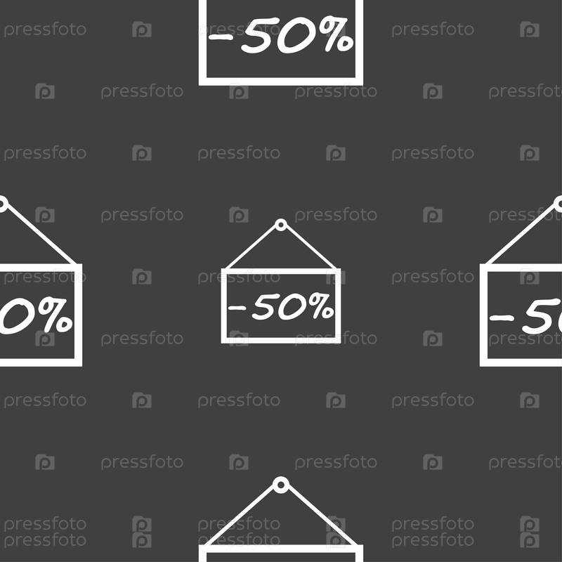 50 скидка. Бесшовный узор на сером фоне. Вектор