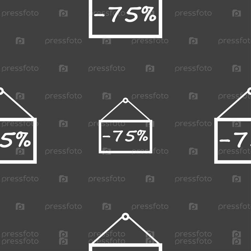 75 скидка. Бесшовный узор на сером фоне. Вектор