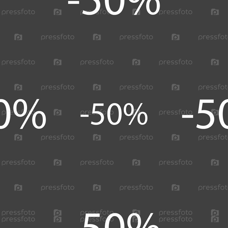 50% скидка. Бесшовный узор на сером фоне. Вектор