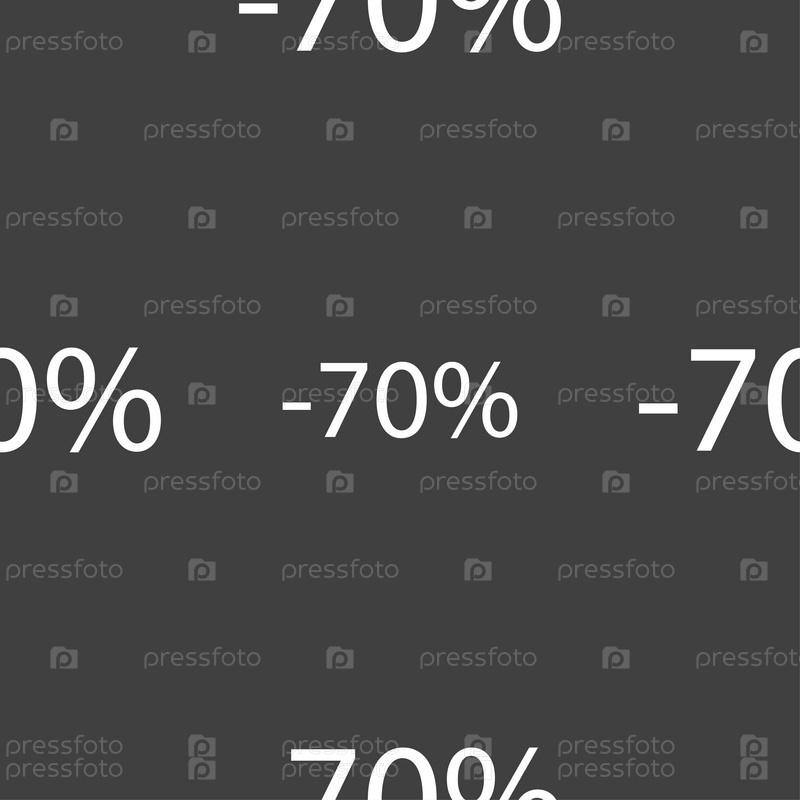 70% скидка. Бесшовный узор на сером фоне. Вектор