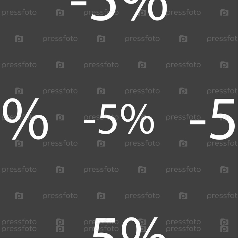 5% скидка. Бесшовный узор на сером фоне. Вектор