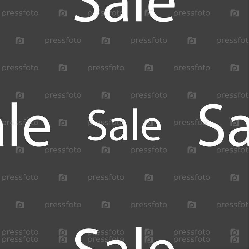 Продажа тег. Бесшовный узор на сером фоне. Вектор