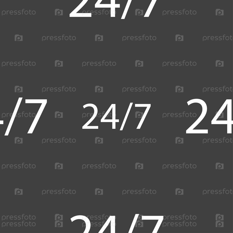 24 часа в сутки и 7 дней в неделю значок. Бесшовный узор на сером фоне. Вектор