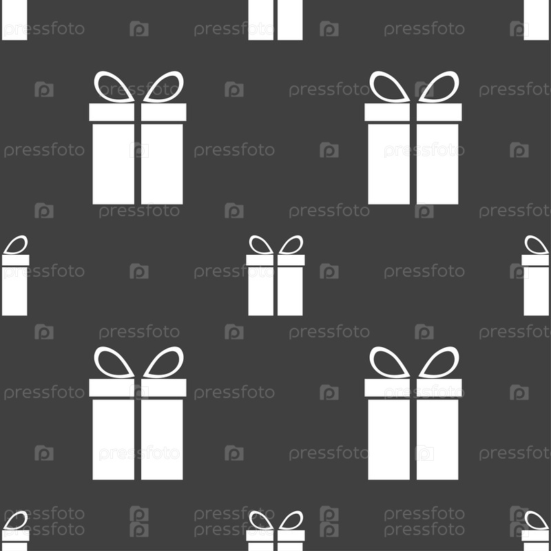 Подарок. Бесшовный узор на сером фоне. Вектор