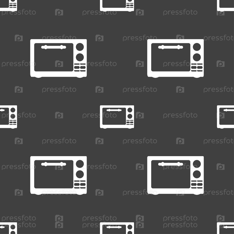 Микроволновая печь. Бесшовный узор на сером фоне. Вектор