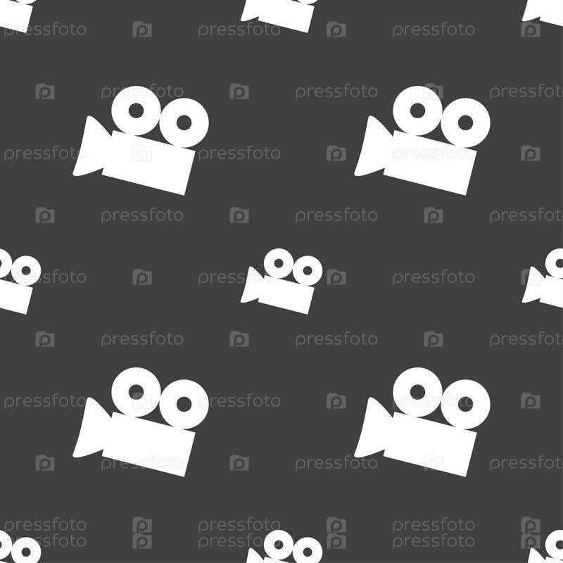 Иконка Видеокамера. Бесшовный узор на сером фоне. Вектор