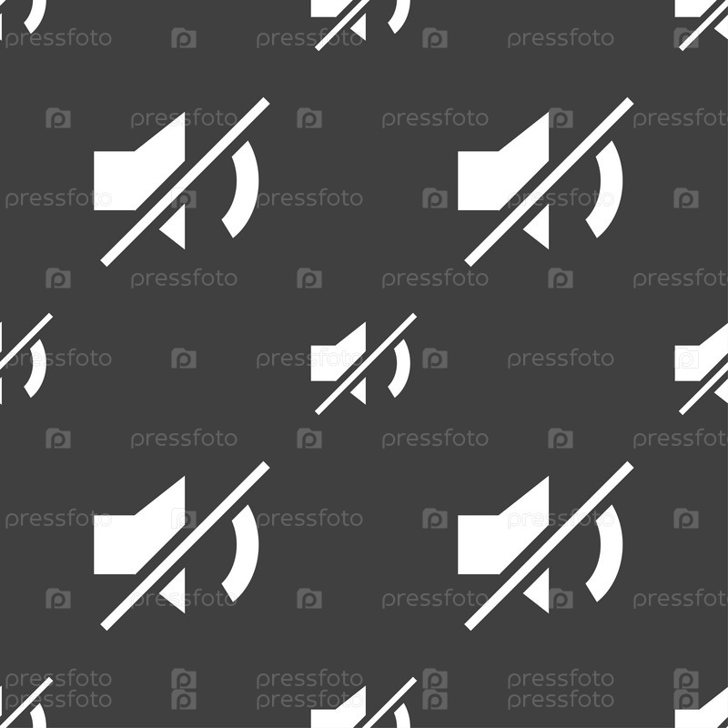 Значок звука динамика. Бесшовный узор на сером фоне. Вектор