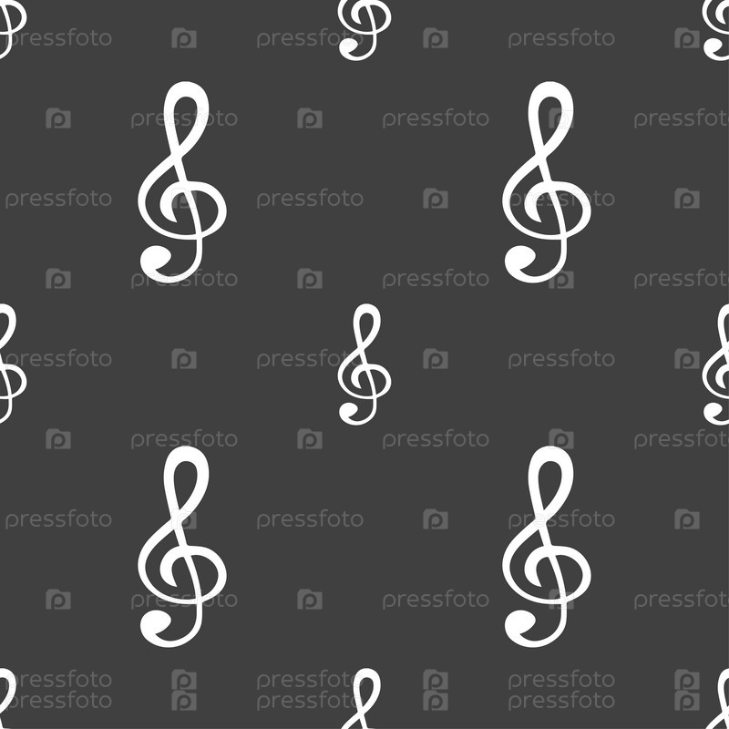 Скрипичный ключ икона. Бесшовный узор на сером фоне. Вектор