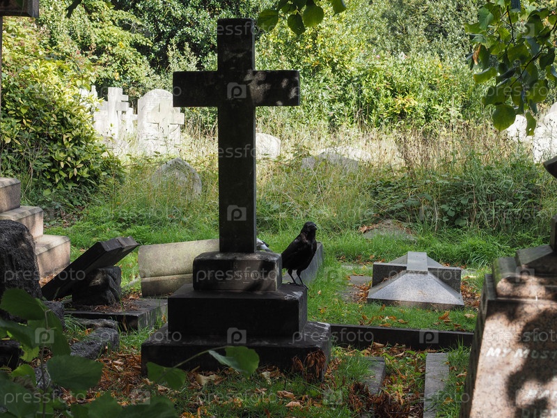 Могилы и кресты на старом готическом кладбище в Лондоне, Великобритания