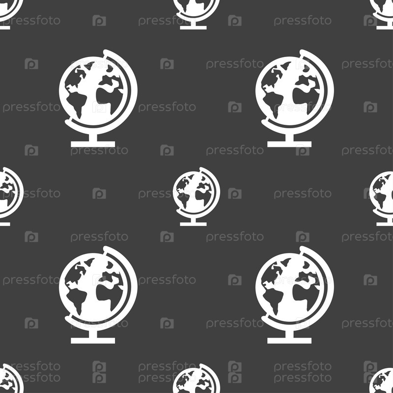 Глобус. Бесшовный узор на сером фоне. Вектор