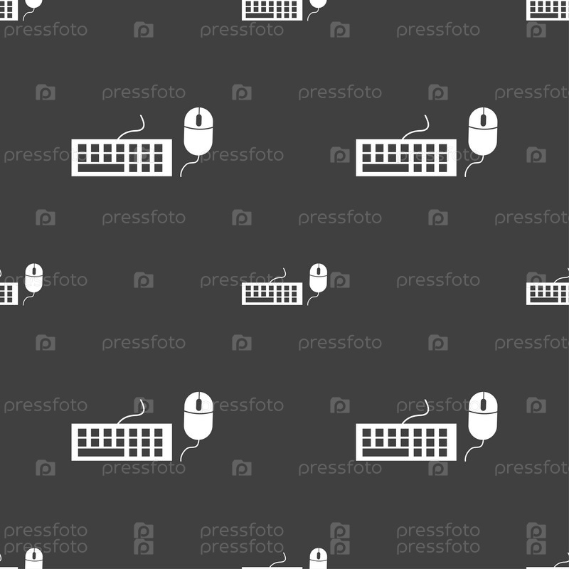 Клавиатуры и мыши значок. Бесшовный узор на сером фоне. Вектор