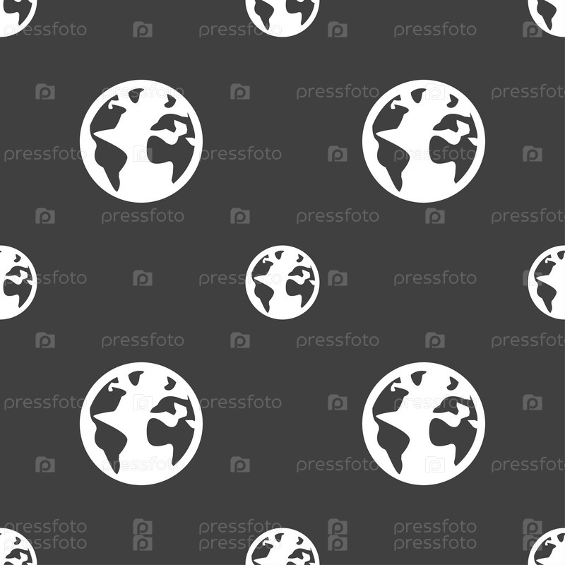 Глобус. Бесшовный узор на сером фоне. Вектор