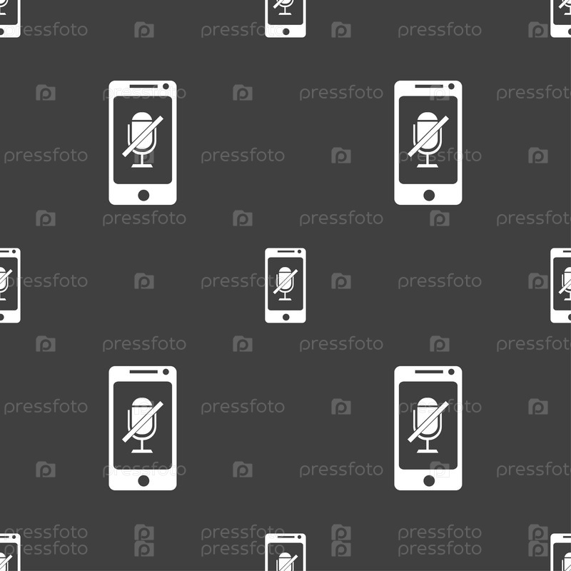 Значок микрофона. Бесшовный узор на сером фоне. Вектор
