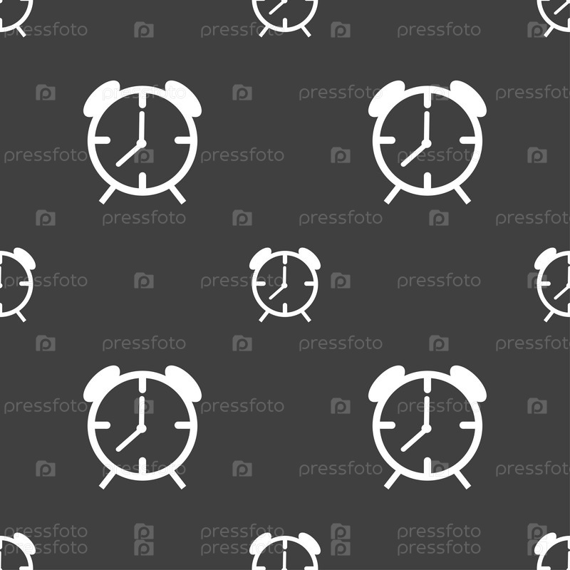 Будильник. Бесшовный узор на сером фоне. Вектор