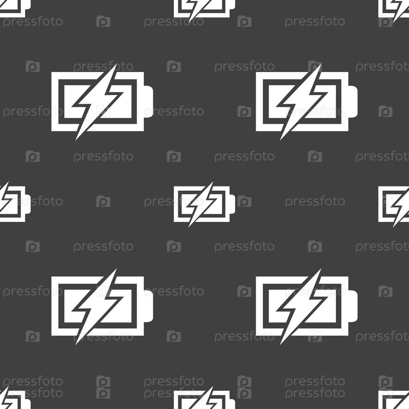 Зарядка батареи. Бесшовный узор на сером фоне. Вектор