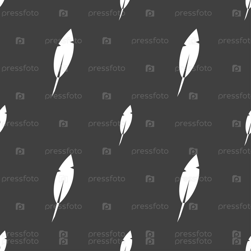 Перо. Бесшовный узор на сером фоне. Вектор