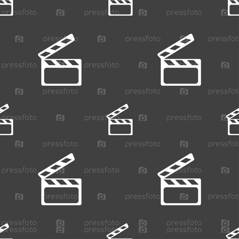 Кино Клаппер. Бесшовный узор на сером фоне. Вектор