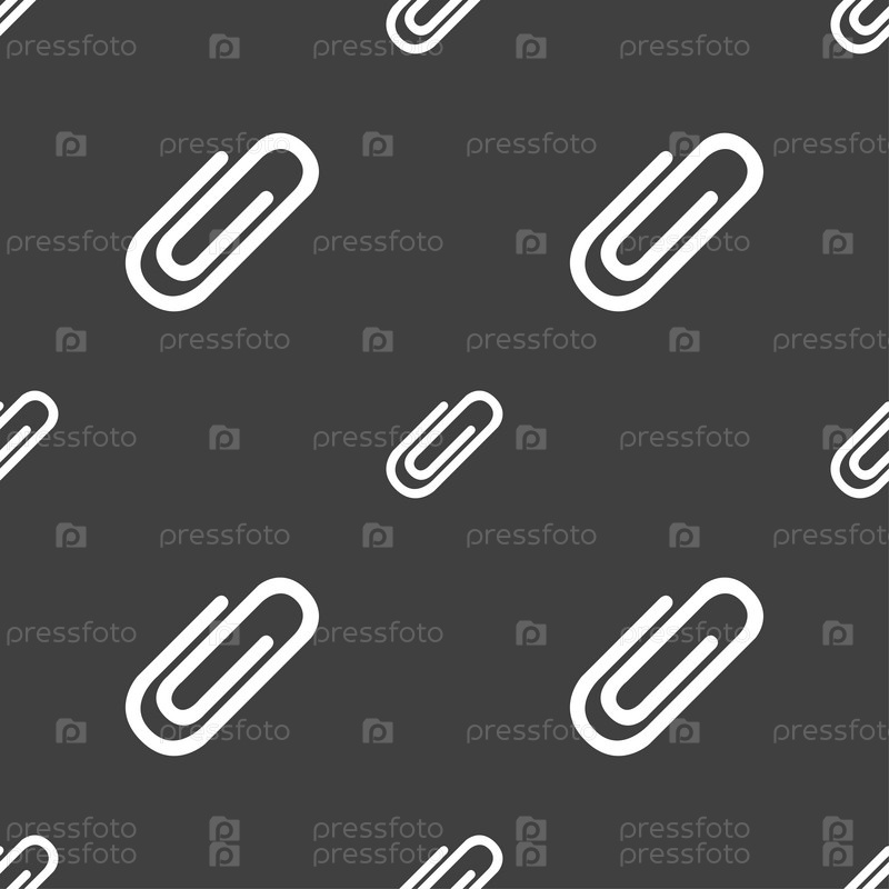 Скрепка. Бесшовный узор на сером фоне. Вектор