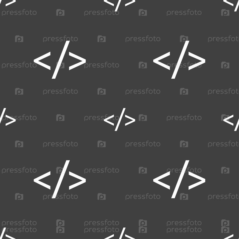 Символ язык программирования. Бесшовный узор на сером фоне. Вектор