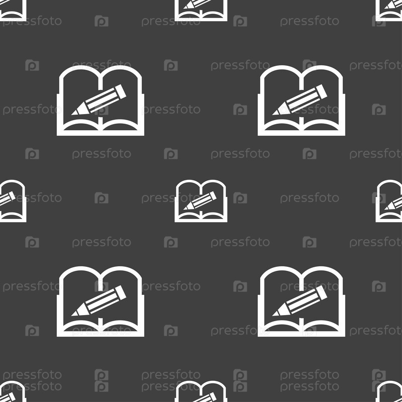 Открытая книга. Бесшовный узор на сером фоне. Вектор