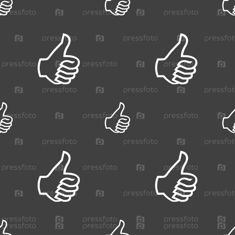 Большой палец вверх. Бесшовный узор на сером фоне. Вектор