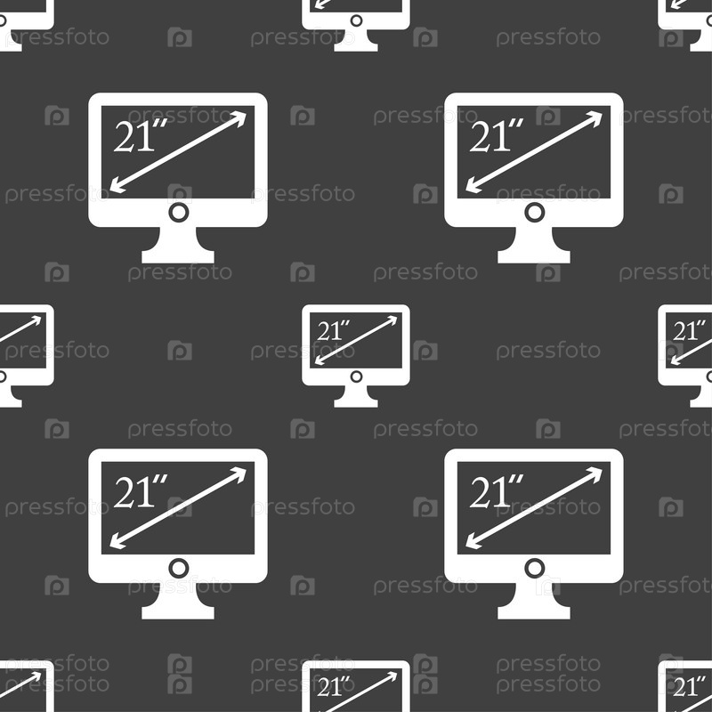 Диагональ 21 дюймов монитор. Бесшовный узор на сером фоне. Вектор