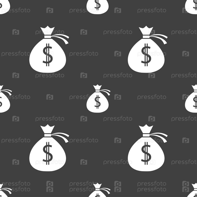 Деньги. Бесшовный узор на сером фоне. Вектор