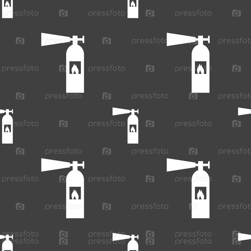 Огнетушитель. Бесшовный узор на сером фоне. Вектор