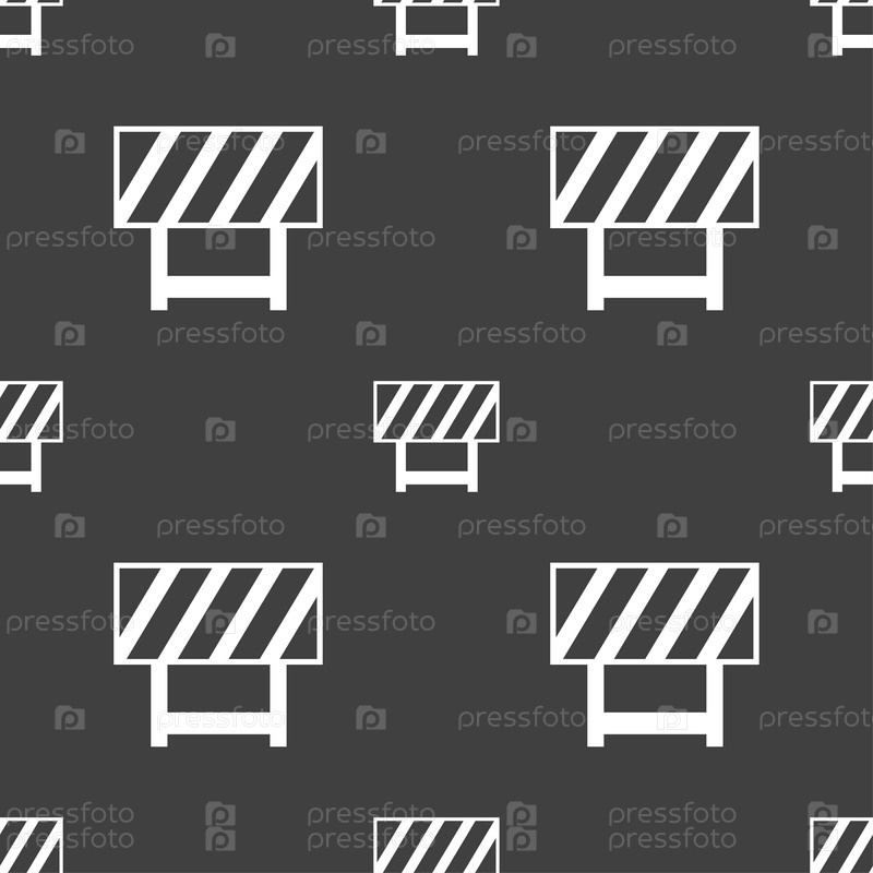Дорожный знак барьер. Бесшовный узор на сером фоне. Вектор