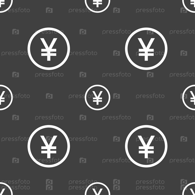 Японские Юань значок. Бесшовный узор на сером фоне. Вектор