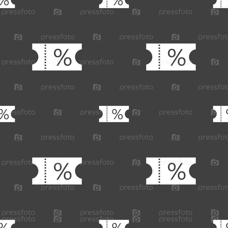 Билет со скидкой. Бесшовный узор на сером фоне. Вектор