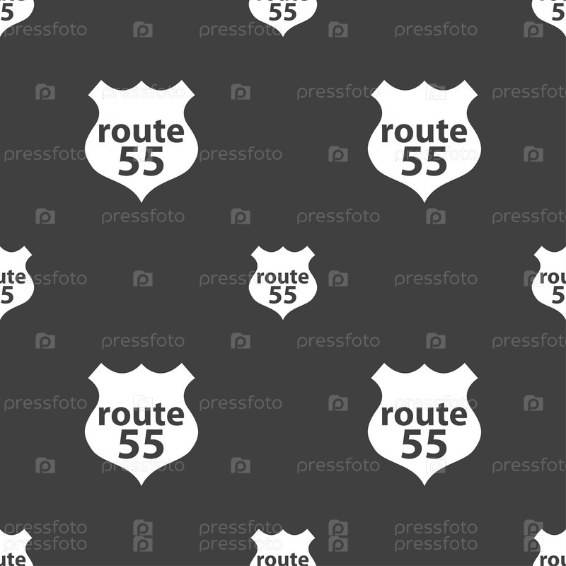 Маршрут 55 шоссе. Бесшовный узор на сером фоне. Вектор
